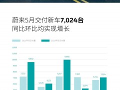 蔚来2022年5月交付7,024台 环比增长38.43%