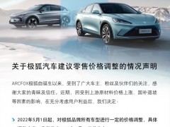 极狐汽车宣告涨价 5月1日起调整